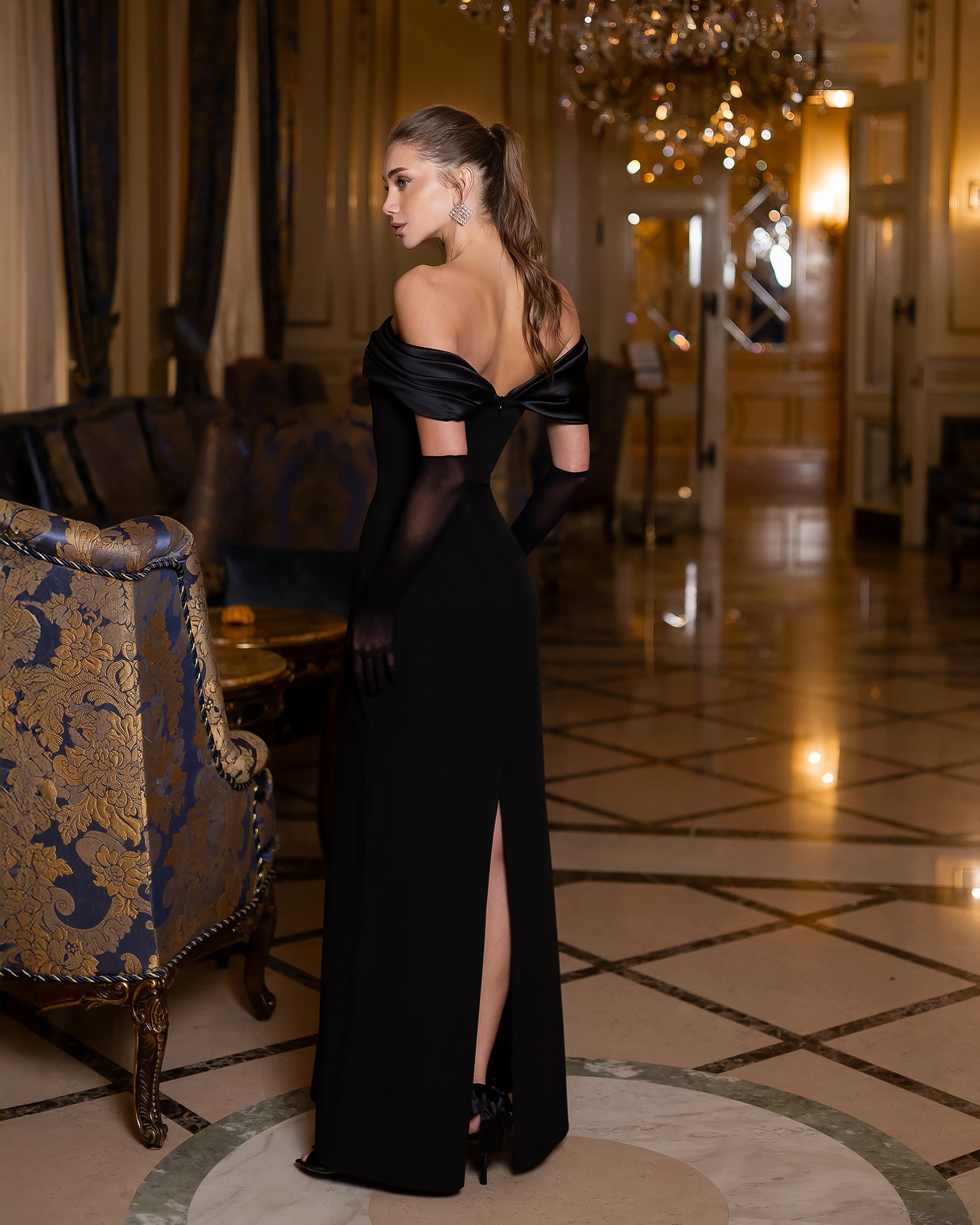 The Vivienne Gown is designed for special occasions, embodying elegance and femininity. Crafted from premium diagonal crepe suiting with royal mango satin inserts, it offers a refined silhouette. The off-shoulder draped neckline adds a romantic touch, while the floor-length cut delivers a timelessly glamorous appeal.