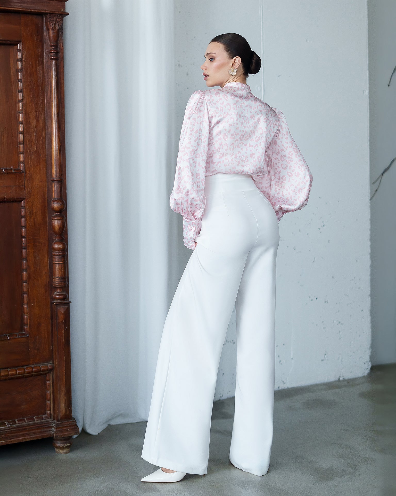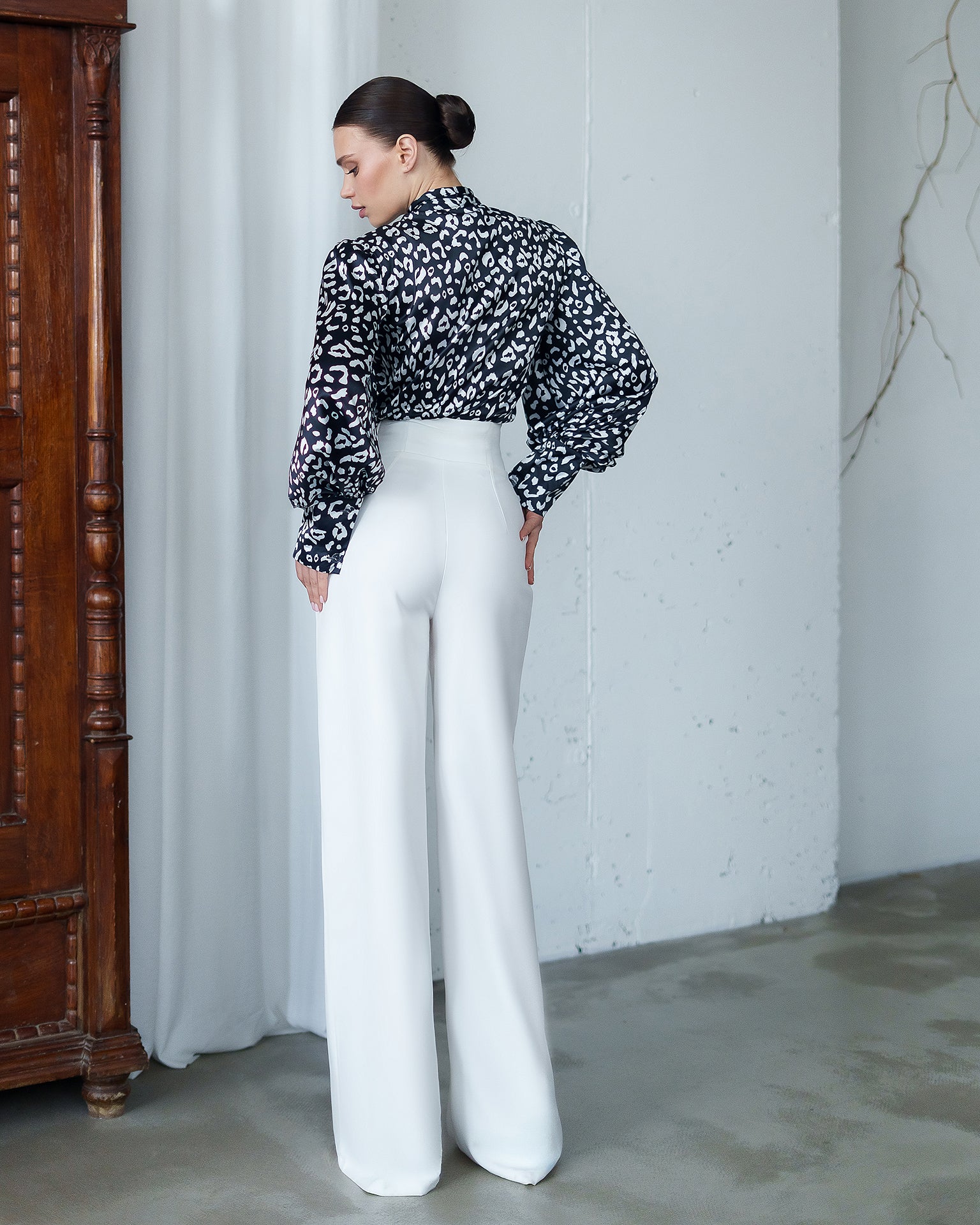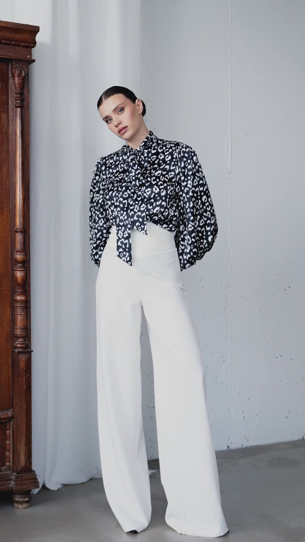 The Darian Pants with a draped waistband are a chic and elegant piece designed to highlight the waist and elongate the silhouette. Crafted from premium diagonal suit crepe, they offer a perfect fit and exceptional comfort. Ideal to pair with blouses, blazers, or simple tops to create a refined, sophisticated look.