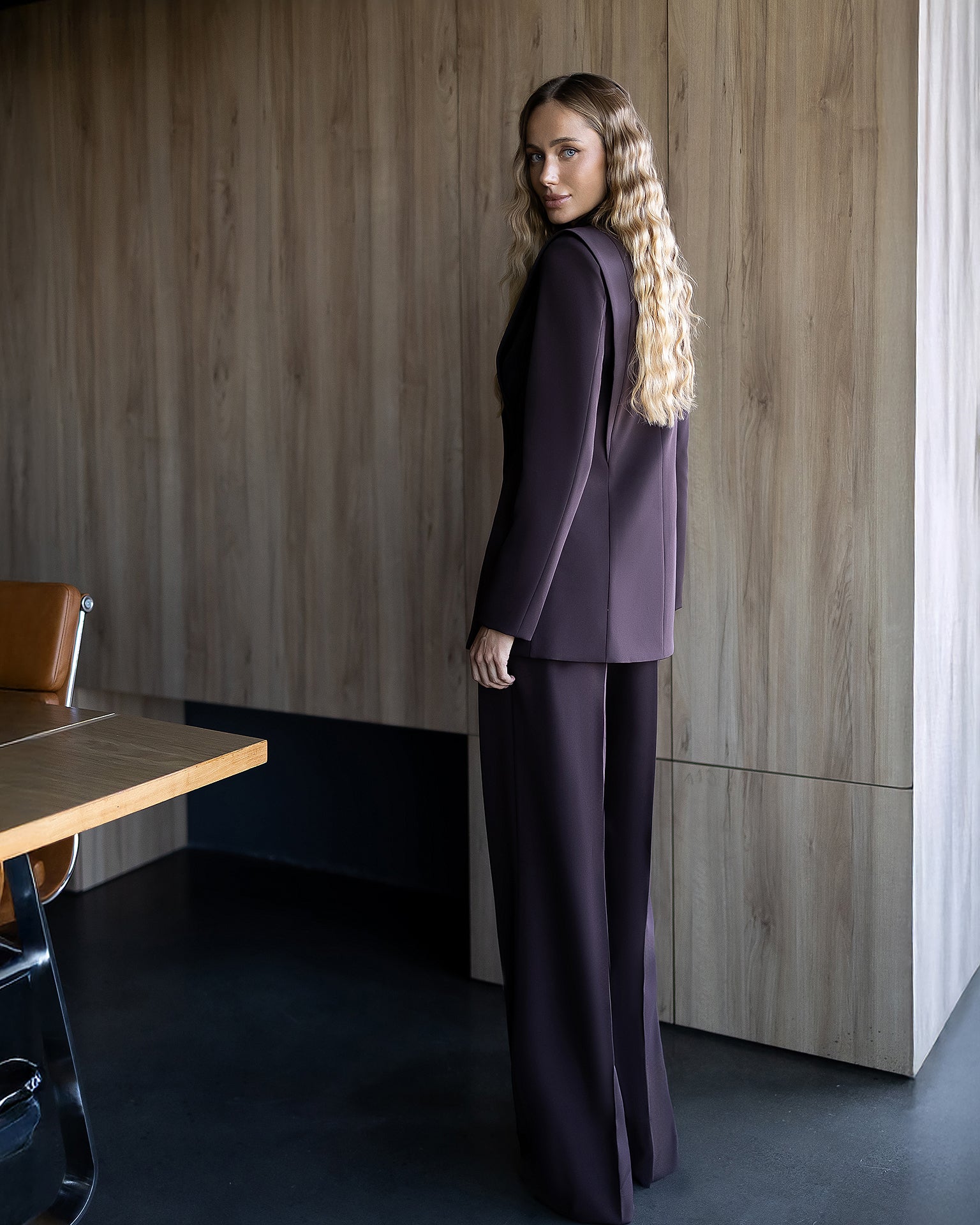 El traje Evelisse encarna la elegancia moderna y la sofisticación atemporal. Un blazer estructurado combinado con pantalones de pierna ancha perfectamente entallados crea una silueta estilizada que acentúa la cintura. Confeccionado con crepé diagonal de primera calidad y un forro denso, ofrece tanto comodidad como una apariencia pulida y lujosa.