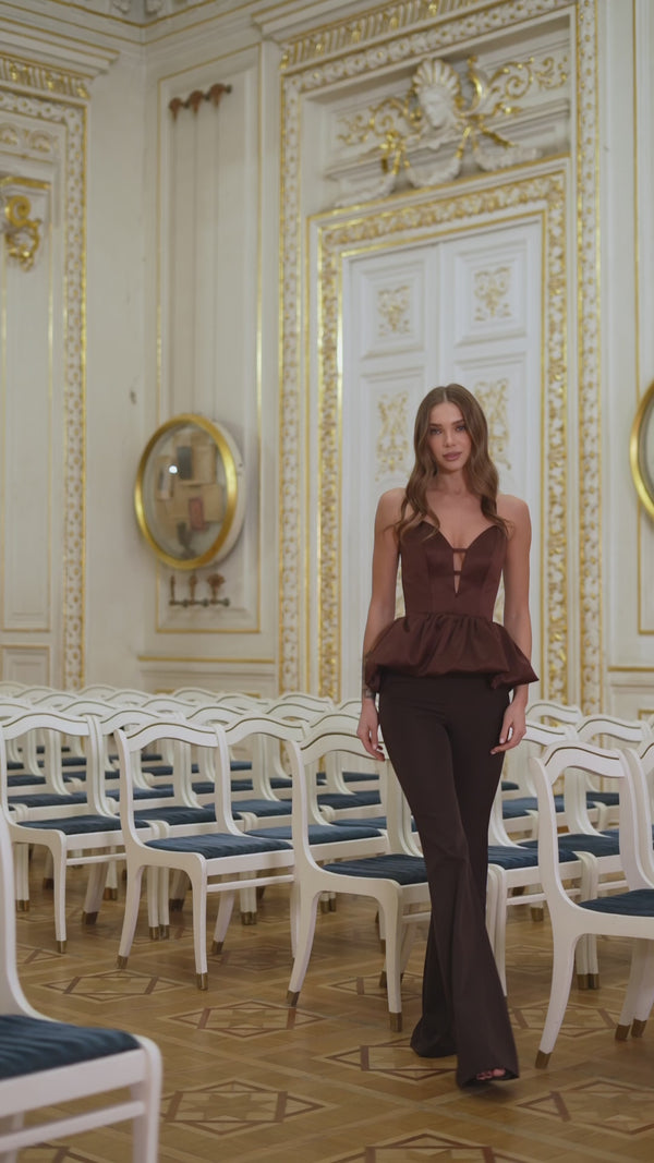 The Carmelle Pants embody refined elegance with their flared silhouette. Designed from premium diagonal crepe suiting, they offer a flattering fit and timeless versatility. The flowing cut elongates the legs and transitions seamlessly from office chic to evening sophistication.