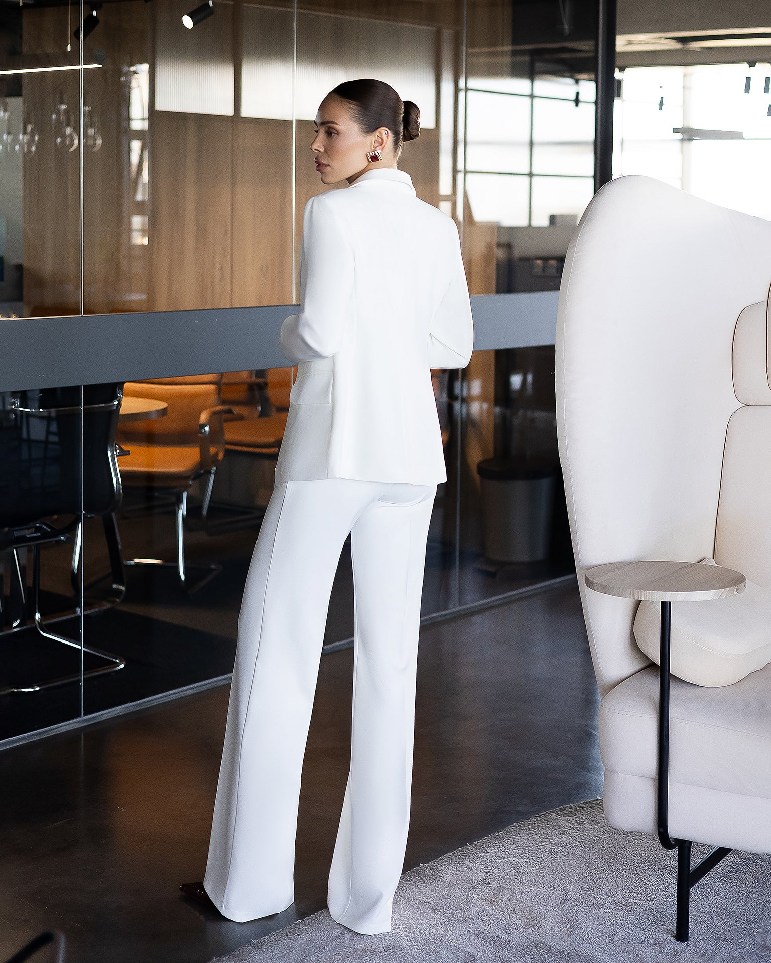 Le costume Orielle est un ensemble sophistiqué en trois pièces conçu pour les femmes qui apprécient l'élégance et la confiance. La veste avec son col en satin dégage un charme raffiné, tandis que le gilet ajusté met en valeur la silhouette, et le pantalon sur mesure complète le look soigné. Parfaitement polyvalent, le costume Orielle passe sans effort des environnements professionnels aux occasions en soirée, en faisant un ajout intemporel à toute garde-robe.