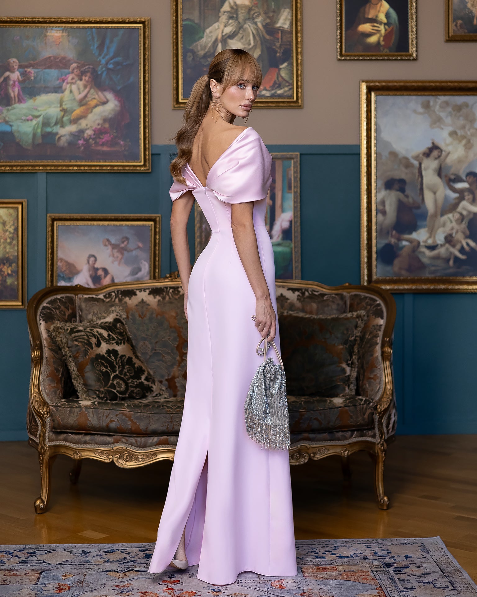 The Vivienne Gown is designed for special occasions, embodying elegance and femininity. Crafted from premium diagonal crepe suiting with royal mango satin inserts, it offers a refined silhouette. The off-shoulder draped neckline adds a romantic touch, while the floor-length cut delivers a timelessly glamorous appeal.