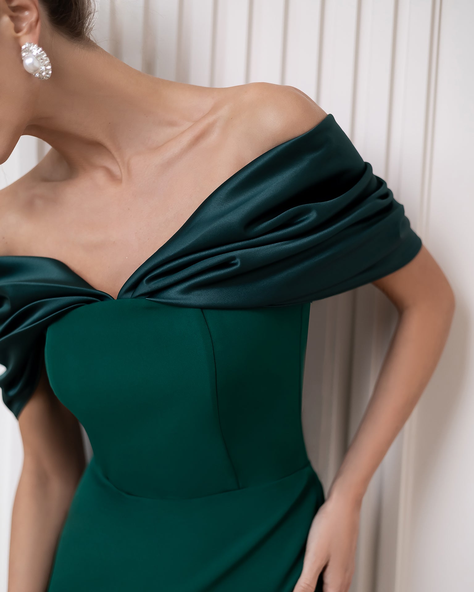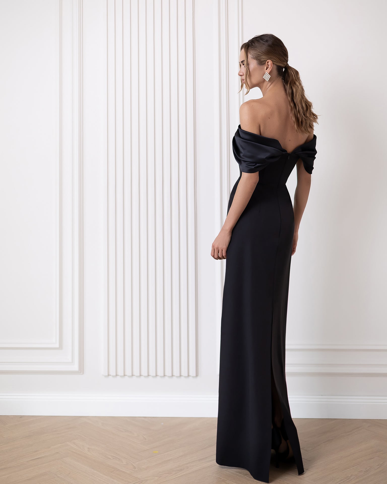 The Vivienne Gown is designed for special occasions, embodying elegance and femininity. Crafted from premium diagonal crepe suiting with royal mango satin inserts, it offers a refined silhouette. The off-shoulder draped neckline adds a romantic touch, while the floor-length cut delivers a timelessly glamorous appeal.