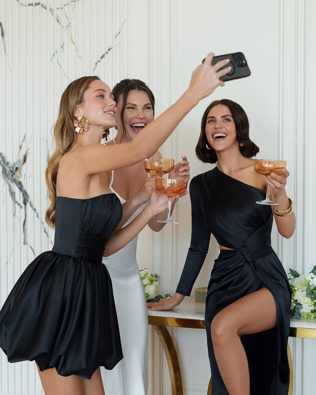 The LYRA CORSET DRESS is pure celebration: a sculpted strapless bodice paired with a voluminous bubble-hem mini skirt cut from sumptuous Royal Mango satin. Internal boning shapes the waist while soft gathers flow from the high sash, creating a playful silhouette that swirls with every step. Equal parts modern and romantic, this dress is designed for engagement parties, birthday dinners, or any night when you want to steal the spotlight.