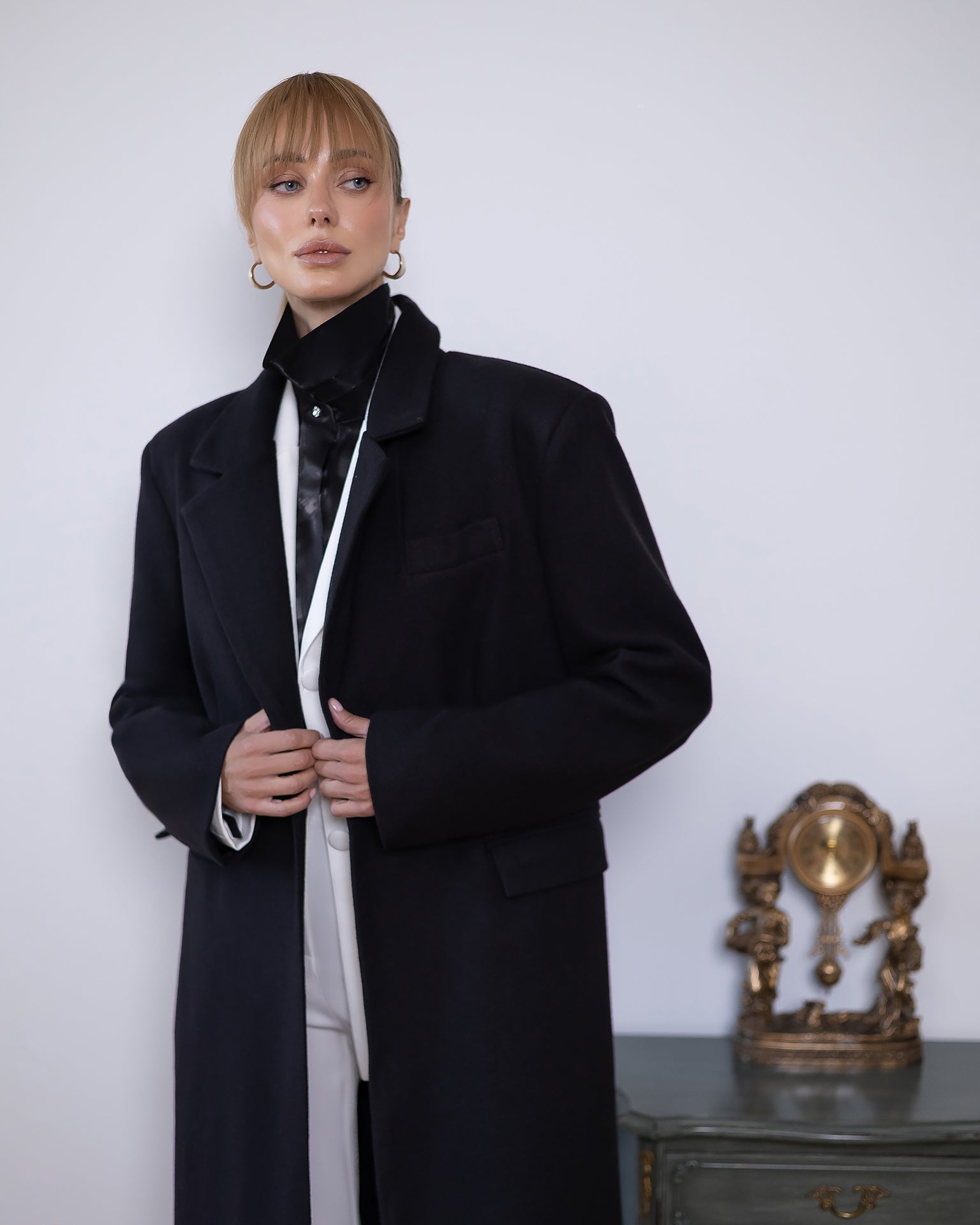 The Maretta Coat is a timeless and elegant outerwear piece designed for a sophisticated, structured silhouette. Made from premium LUX coat fabric with a dense, high-quality lining, it provides both warmth and refinement — perfect for the cooler season.