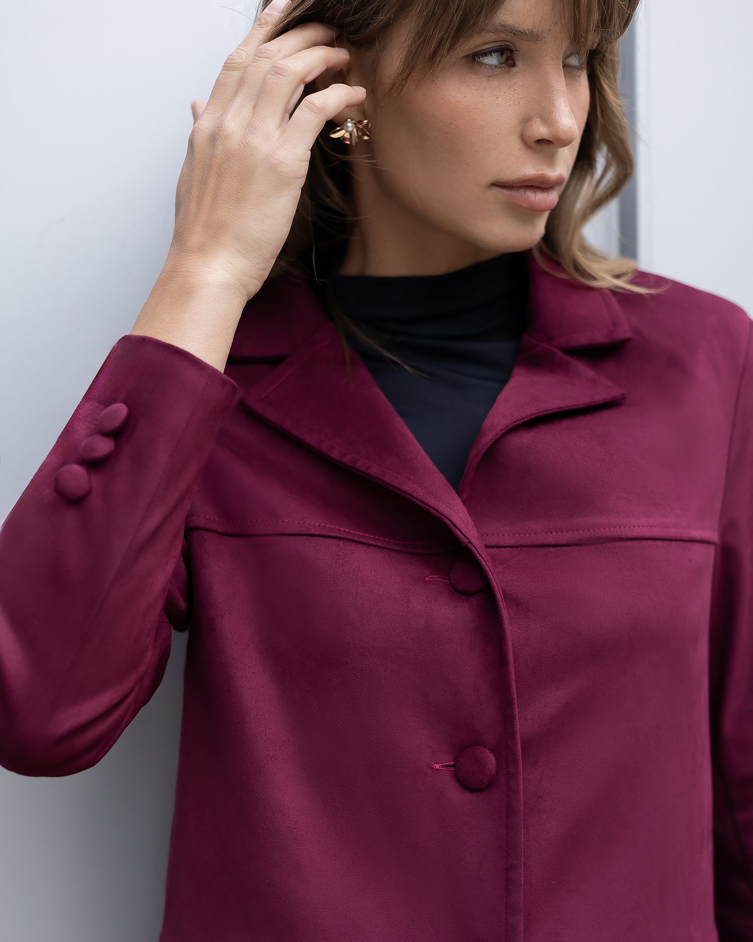 Crafted from soft premium double-sided suede, it embraces the body with elegance and structure. The tailored blazer and high-rise trousers create a confident, timeless silhouette — a perfect blend of luxury and ease.