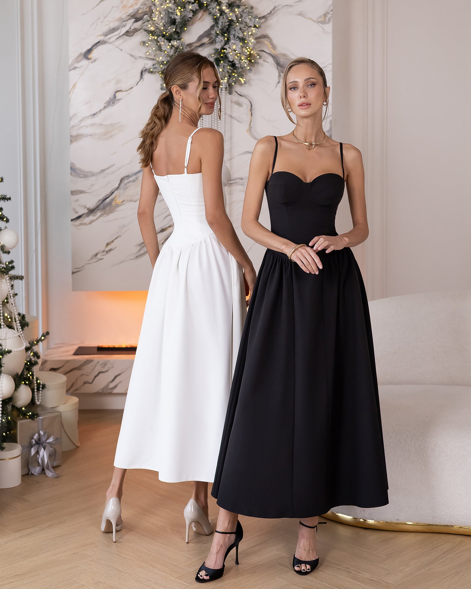 The Odette Midi Dress is designed for unforgettable moments. Featuring a corset-style bodice with delicate cups and thin straps, it highlights the shoulders and neckline with refined elegance. The flowing midi skirt adds a sense of lightness and aristocratic charm. With its clean silhouette and graceful details, this dress becomes a perfect choice for special occasions, summer walks by the sea, or romantic evenings.