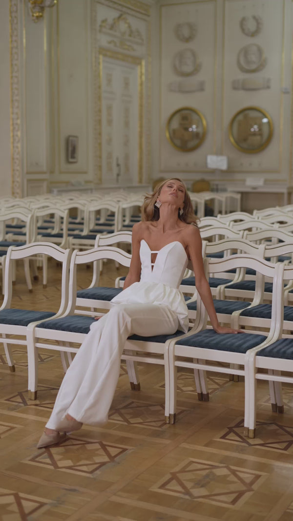 Valériane Corset Top — a sculpted sweetheart corset crafted from dense mango satin with a reinforced base, designed to shape the bust and waist with couture precision. The voluminous peplum adds a dramatic, feminine accent, making it a striking choice for evening looks.