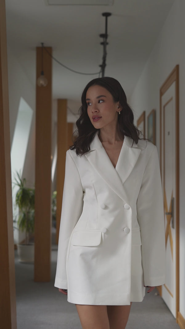 The VIVIANA BLAZER DRESS fuses precision tailoring with refined allure. Cut from dense premium viscose suiting, its double-breasted front, sharp peak lapels and structured shoulders channel classic power dressing, while the mini length and darted waist sculpt an elegant hourglass line. Fully lined for comfort and shape retention, this statement piece moves effortlessly from executive meetings to after-dark events — elevate every occasion with the confident sophistication of the VIVIANA BLAZER DRESS.
