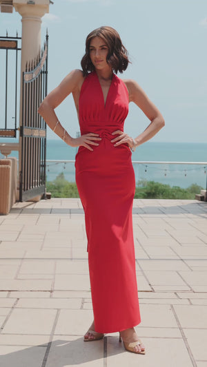 SOLIS, derin askılı yakası, yumuşak fırfırlı beli ve sütun detaylı siluetiyle 90'ların şıklığını yansıtıyor. Nefes alabilirlik için pamukla zenginleştirilmiş birinci sınıf çapraz dökümlü krep kumaştan üretilen elbise, vücuda akıcı bir şekilde otururken, açık sırtı ve yüksek yırtmacı, göz alıcı bir çıkış sahnesi vaat ediyor. İster gün batımı düğünleri ister mehtaplı galalar için olsun, SOLIS her adımda zahmetsiz bir zarafet sunuyor.